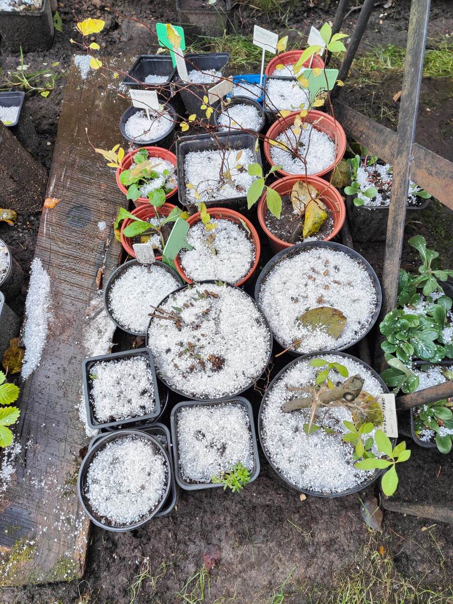 Нынешняя эксклюзивная зима, по-видимому, заставит нас пересмотреть многие аксиомы. Окончательные выводы делать, конечно, рано, но кое-что определённое уже можно сказать. На каком-то дружественном канале недавно обсуждали зимнюю передержку растений в горшках. Волнение садоводов понятно: то снег, то дождь, то плюс, то минус оптимизма не добавляют. Растениям непросто выживать в таких условиях, тем более тем, у которых затруднён отток воды от корней. Садоводы высказали мнение, что горшки на зиму нужно укладывать на бок для лучшего стока воды из них. Я же была уверена, что беспокоиться не стоит: по моему опыту, растения в горшках переносят зимовку на отлично. И это действительно так. И в прошлую, и в позапрошлую зимы я вынуждена была оставить довольно много многолетников и несколько кустарников зимовать в горшках - не было места для их посадки на постоянное место. Горшки разного объёма, от небольших до трёхлитровых. Причём, некоторым из них досталось место в небольшой канавке. Обе зимовки