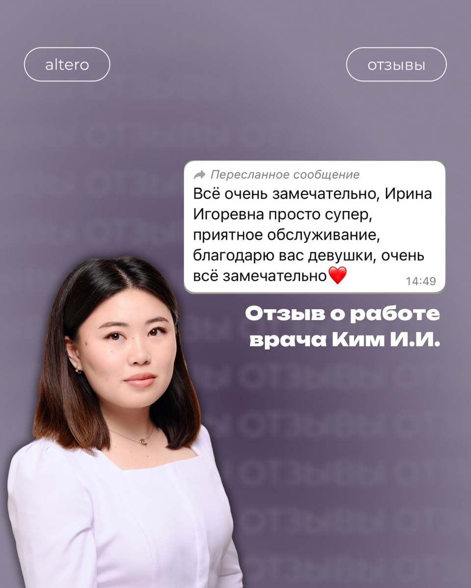 Что вам нужно знать о наших специалистах? Доктора, работающие в нашей клинике — настоящие профессионалы, влюбленные в свое дело. Они прекрасно чувствуют красоту, с полуслова понимают пожелания пациента и выполняют все на высочайшем уровне. Сайт: https://altero-med.ru/ ТГ: https://t.me/altero_moscow