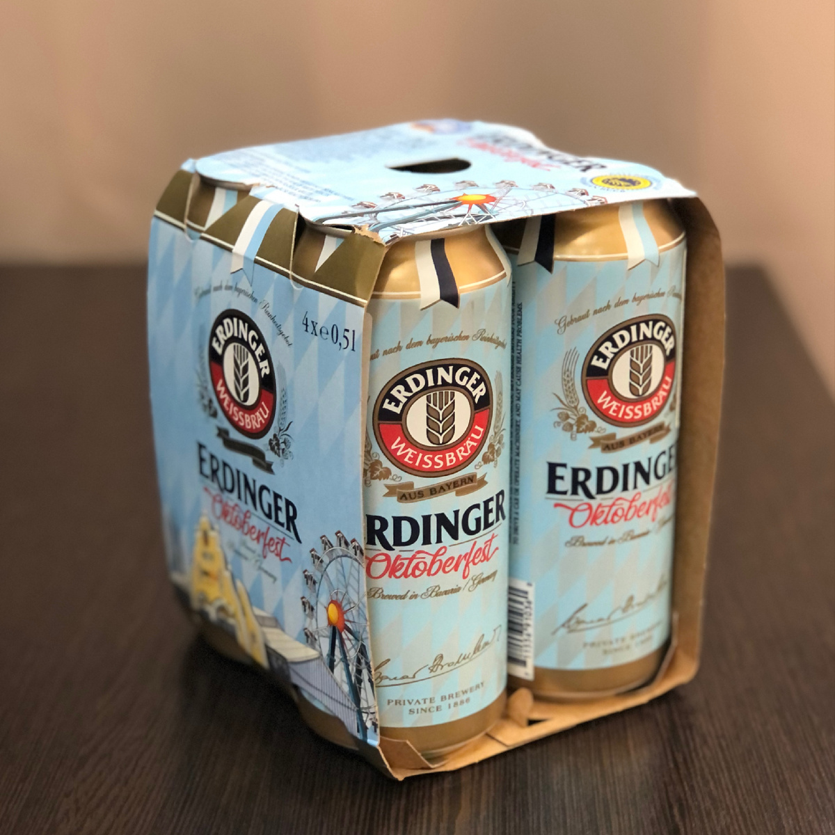Еще в конце ноября наконец-то встретил в продаже фестивальный Erdinger Oktoberfest. Пиво завезли в Россию в середине сентября, аккурат перед началом знаменитого фестиваля, но наши пути пересеклись только спустя два месяца. Со словами «лучше поздно, чем никогда", я и приобрёл упаковку этого пива, состоящую из четырёх банок.