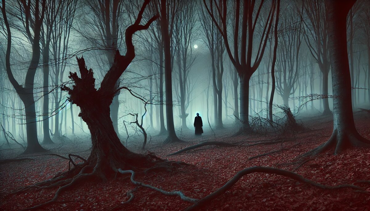 Антон шёл по осеннему лесу, сухие листья хрустели под ботинками, а с веток на него будто смотрели сотни пустых глаз. Казалось, огромные деревья неравнодушно прислушивались к каждому его шагу, пронизывая взглядом вплоть до самого сердца. Хотелось верить, что это всего лишь воображение, но нутро подсказывало обратное — лес действительно замечал его присутствие. Он брёл дальше и дальше, стараясь сосредоточиться на поиске грибов. Однако ощущение чужого взгляда не отпускало. Сперва это был легкий призрак страха, словно невидимая кошка кралась следом. Потом возникли более явственные звуки: ветка хрустнула раз, другой — но почему-то только в ответ на его собственные движения, как будто шаги дубля доносились из глубины чащи. На поляне Антон остановился, чтобы оглядеться. Рука, сжимавшая нож для грибов, слегка дрожала. Ни звука вокруг — лишь ветер, лениво шуршащий опавшей листвой. И тут из темнеющих зарослей выскользнула фигура. Это был невысокий мужчина, отталкивающе худой, с торчащими костям