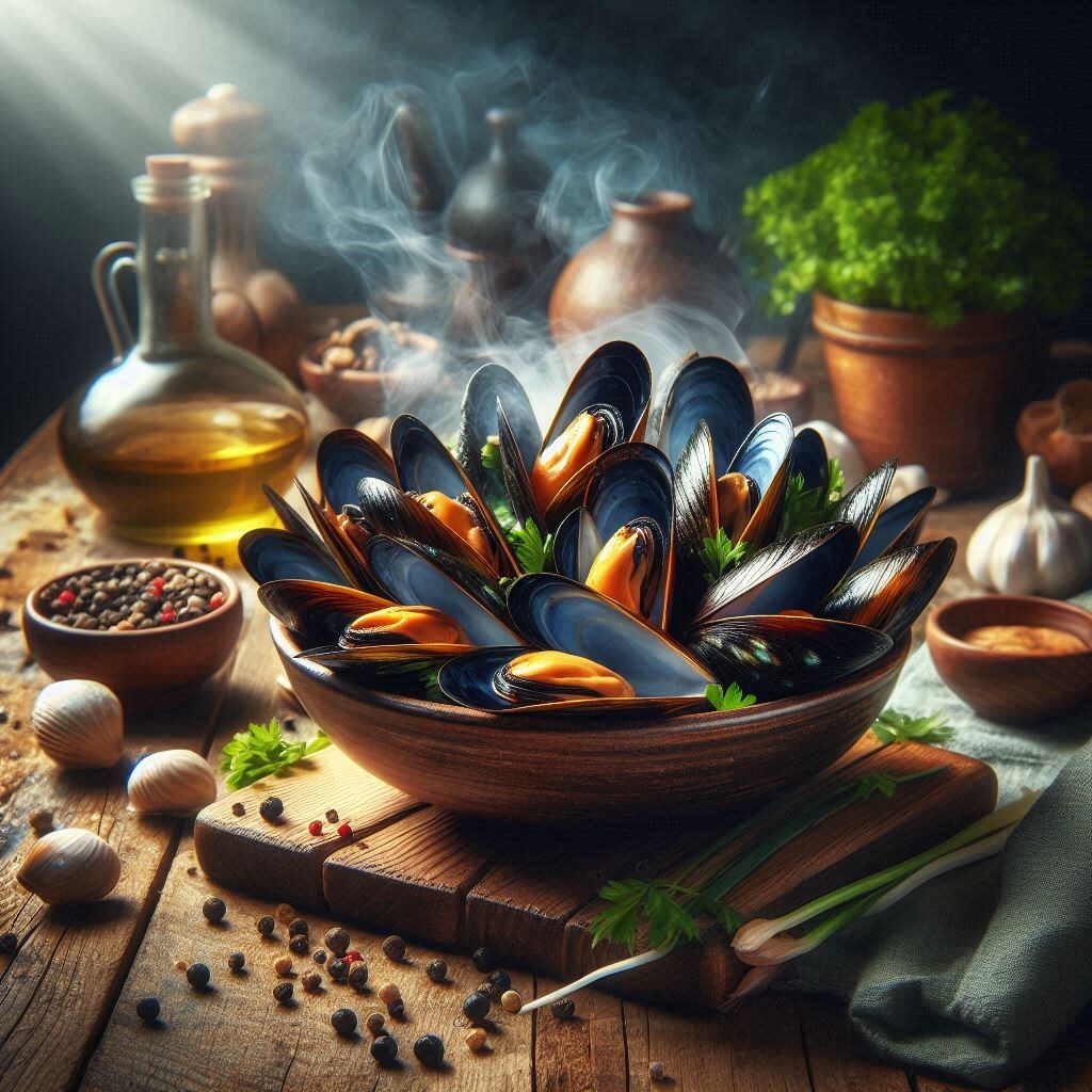 Не знаю как вы относитесь к Дню Святого Валентина, празднуете ли со своей второй половинкой или для вас это просто обычный день. Но в любом случае хочу предложить вам пару рецептов, подходящих как для романтического ужина, так для того, чтобы просто побаловать себя приятной экзотикой. Мидии - это морепродукт, который давно завоевал место в сердцах гурманов по всему миру. Эти моллюски не только вкусные и питательные, но и воплощают в себе дух прибрежной кухни, привнося в блюда свежесть и аромат моря. Давайте рассмотрим, как мидии превратились в любимое блюдо, и откроем для себя два интересных рецепта их приготовления. История появления История использования мидий в кулинарии насчитывает тысячелетия. Археологические находки свидетельствуют, что мидии употреблялись в пищу ещё в доисторические времена. В Европе мидии были популярны среди древних римлян и греков, а в Средние века их активно собирали в прибрежных районах Франции и Нидерландов. С течением времени мидии стали частью изысканных