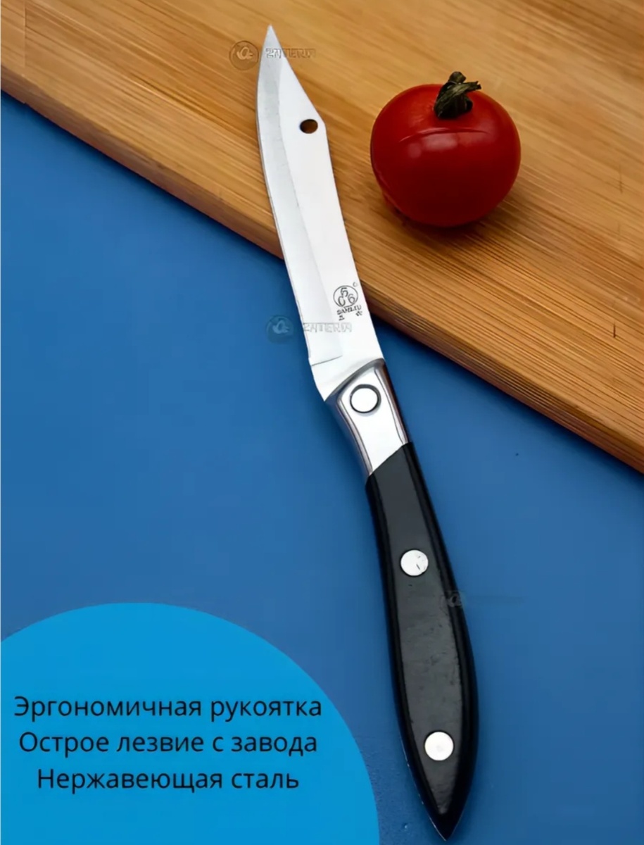 Здравствуйте. Если бы, да как бы. Но вот нельзя дарить ножи. А вы побалуйте себя такими ножами, цена на вб не большая, а удовольствие море... С возрастом я стала более требовательна к вещам, особенно к кухонным ножам. И, честно говоря, я не разочарована. Ножи, которые я приобрела, оказались не просто хорошими, а превосходными. Во-первых, их острота. Лезвия настолько острые, что я могу нарезать овощи и фрукты с минимальным усилием. Они режут плавно и ровно, без усилий и рывков. Во-вторых, качество стали. Ножи изготовлены из стали, которая не тускнеет и не ржавеет даже при частом использовании. Это говорит о долговечности и надежности этих ножей. Легко заканчивается, главное банки ими не открывать. Кончик ножа тогда быстро ломается либо на ножах появляются зазубрины. В-третьих, эргономичность. Рукоятки ножей идеально ложатся в руку, обеспечивая удобный и безопасный хват. Это особенно важно при работе с острыми инструментами. Материал рукоятки ножей не любит, когда их роняют либо кид