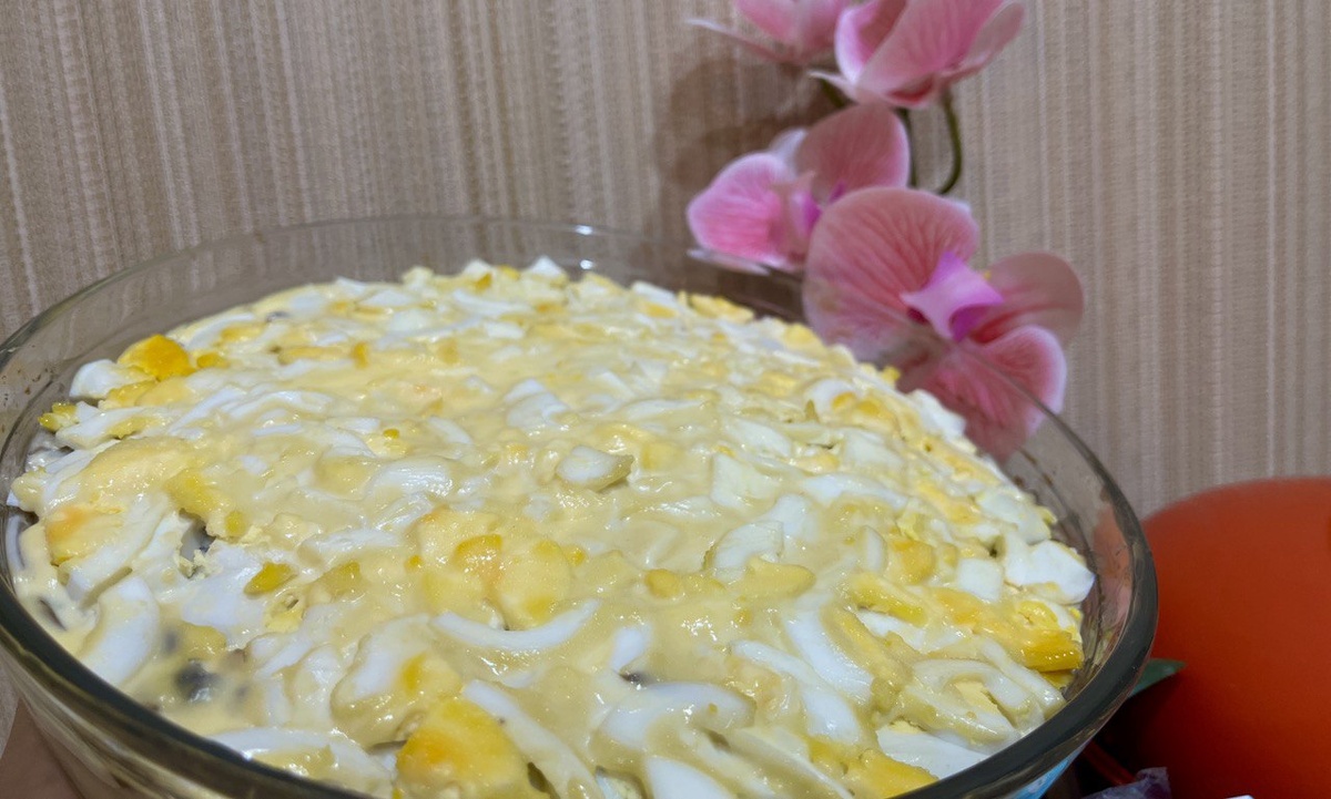 Извечный вопрос: что приготовить вкусное блюдо, чтобы порадовать своих близких? - для хозяюшек всегда стоит остро. Предлагаем вашему вниманию вкусный и сытный салат. Конечно, его приготовление займёт как минимум час, но результат того стоит! Вам понадобится 400 г грудки, примерно 500 г грибов (любых, какие больше нравятся вашей семье. но лучше шампиньоны), 2-3 средних луковицы, 6 шт яиц, 2-4 ст. л. майонеза. Растительное масло; соль, перец по вкусу, Отварите грудку до готовности в подсоленной воде. В это же время поставьте отвариваться яйца вкрутую, после чего охладите их. Нарежьте грибы полосками средней толщины и обжарьте их на растительном масле. Можно сразу посолить и поперчить. Если хотите избавиться от лишнего масла, выложите грибы в сотейник (дуршлаг), чтобы оно стекло. Порежьте лук полукольцами и обжарьте также на растительном масле. Очистите яйца от скорлупы. Порежьте отваренную грудку небольшими брусочками. Как нарезать яйца — решайте сами. Можно натереть на самой мелкой тёрк
