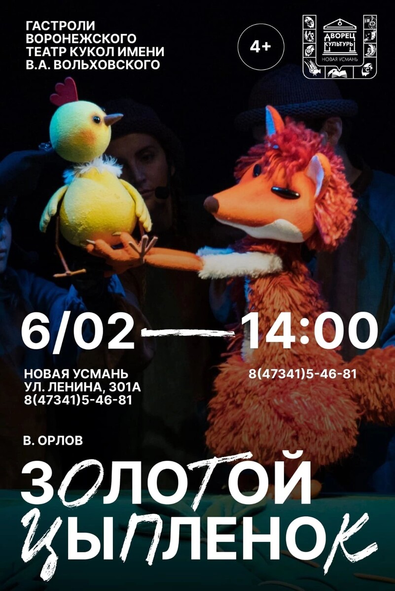 Дворец Культуры приглашает вас в захватывающее путешествие! Спектакль «Золотой цыпленок» состоится 6 февраля в 14:00 в Дворце культуры села Новая Усмань. Это яркий музыкальный спектакль, рассказывающий о могуществе родительской любви, особенно отцовской. Мы исследуем ее истоки и чудеса, которые происходят с теми, кто любит и кого любят. Сложные темы подаются в легкой и игривой форме, доступной для понимания ребенка, с использованием знакомых образов. Декорация-трансформер и элементы анимации погружают маленьких зрителей в волшебный мир нашей истории. Юмор, неожиданные повороты сюжета и яркие, запоминающиеся реплики персонажей делают спектакль интересным и для взрослых. История начинается с лисы, которая придумывает новый хитроумный план — украсть у бабушки и дедушки золотое яичко, мечтая высиживать курочку, приносящую золото. Она вовлекает в свой план волка, хитро перекладывая всю работу на него: проникнуть в деревню, заполучить яйцо и даже высиживать цыпленка. Сначала все идет по