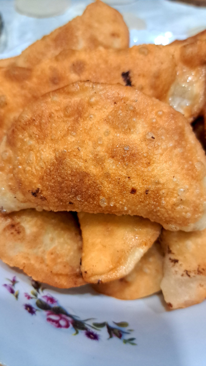 В прошлый раз когда я лепила пельмешки у меня осталось немного теста и фарша. Поэтому я решила попробовать приготовить из этих продуктов чебуреки, но так как теста было немного слепила их маленькими. Вот такими, напоминающими вареники. Тесто как в моем рецепте на пельмени, оно универсальное получилось подойдёт как для пельменей, так и для чебуреков. Найти его можно вот в этом рецепте👇. В этом же рецепте берём состав начинки (фарша) 👇. Ну и лепим по принципу вареников, только с мясом. Раскатываем тесто, толщиной примерно 5 миллиметров, вырезаем стаканом кружочки примерно 8-10 см и выкладываем начинку, у меня это полная чайная ложка фарша. Загибаем тесто, прижимаем и хорошо защипываем край, так как будто лепим вареники. Затем обжариваем с двух сторон в большом количестве растительного масла, до золотистой корочки. Вот такие вкусные, хрустящие, в тоже время очень нежные маленькие чебуречки получились. Моя ребятня смела их за 15 минут. ПРИЯТНОГО ВАМ АППЕТИТА!