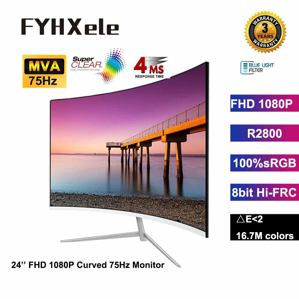 - Компьютерный монитор FYHXele - это 24-дюймовый изогнутый монитор FHD 1080P, 75 Гц