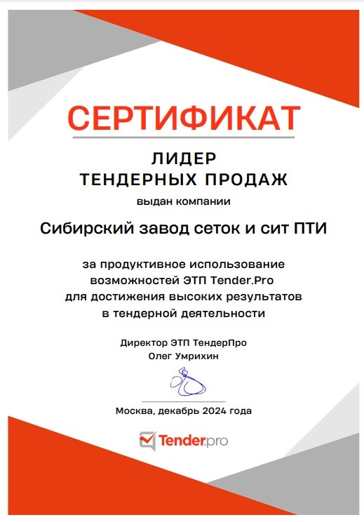 Сибирский завод сеток и сит Промтрейдинвест — лидер тендерных продаж в рейтинге Tender.Pro