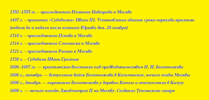 1497 г. – принятие «Судебника» Ивана III. Установление единого срока перехода крестьян (неделя до и неделя после осеннего Юрьева дня, 26 ноября)