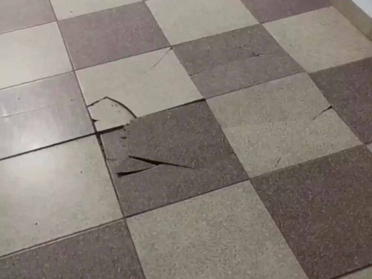 В последние два месяца жильцы стали замечать, что плитка на разных этажах начала подниматься. Из-за образовавшейся пустоты она потрескалась, а в некоторых местах даже разрушилась.