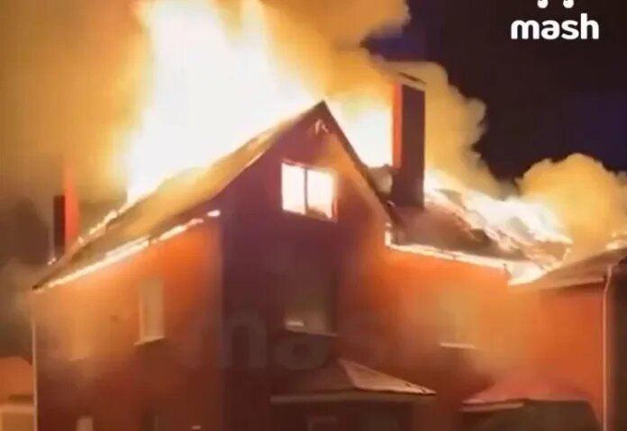 Mash показал карды полыхающего коттеджа в Рязани после падения обломков БПЛА