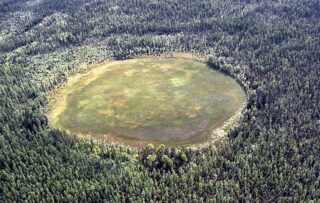 Чертово кладбище – аномальный участок тайги в Красноярском крае, неподалеку от деревни Карамышево. Некоторые исследователи (например, Виталий Рубцов в книге «Тунгусский метеорит: на пути к забвению») высказывают версию, что происхождение зоны связано именно с Тунгусским метеоритом. Но до сих пор ни на вопрос о возникновении Чертова кладбища, ни на другие, связанные с этой аномалией вопросы, однозначных ответов нет… Первые упоминания о таинственном месте на границе Красноярского края и Иркутской области относятся к 1920 году. Тогда одному из местных крестьян довелось наблюдать, как на необычной круглой поляне, расположенной посреди тайги, загнанный им лось провалился под землю. При этом само место нисколько не напоминало топь или болото – наоборот, от земли исходил дым и явственно чувствовался жар.[С-BLOCK] Впоследствии подобные события были неоднократно описаны и другими жителями тех мест: на «лысой» поляне пропадали животные и люди. Свидетели этих исчезновений рассказывали, что сама