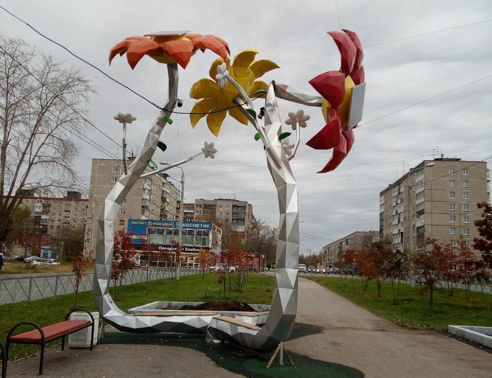 Напомним, осенью прошлого года подрядчик, который менял бордюр на клумбе, случайно зацепил краном трос. В итоге одна ветка арт-объекта, которая удерживалась на этом тросе, сломалась. Корпорация ПСС тогда обещала отремонтировать арт-объект. Однако уже ближе к новогодним праздникам опоры двух оставшихся цветков согнулись и арт-объект пришлось срочно демонтировать.