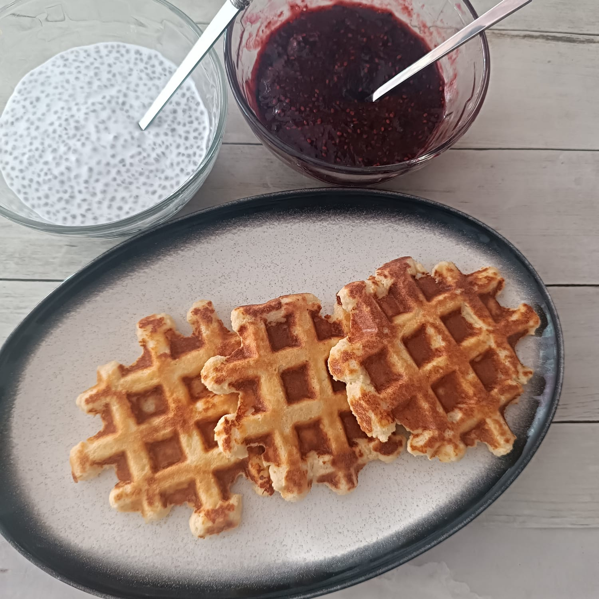 Мягкие творожно-кокосовые вафли с чиа кремом и чиа джемом