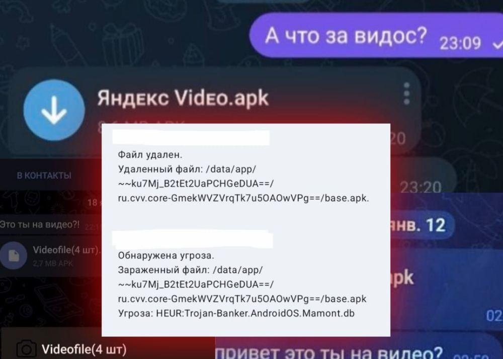 Россиян предупредили об опасном трояне «Mamont», который мошенники рассылают через мессенджеры. Предупреждение выпустил официальный телеграм-канал Управления по организации борьбы с противоправным использованием информационно-коммуникационных технологий МВД РФ (Управление «К»). Недоброжелатели отсылают файл с безобидным названием. «Чаще всего злоумышленники направляют файлы, сопровождая их вопросом: «Это ты на видео?», также слово «видео» в разных вариациях используется в названии файла», — отметили в управлении «К». Правда файл имеет расширение apk — то есть приложение. И при открытии устанавливается вредоносный софт, который может заразить устройство трояном с говорящим названием «Mamont». Вирус может считывать уведомления, СМС и фотографии из галереи. «Кроме того, троян может автоматически пересылать данный файл всем контактам в мессенджере», — подчеркнули полицейские. Само собой, конечная цель злоумышленников — это получение доступа к платежным средствам. Но даже если этого не прои