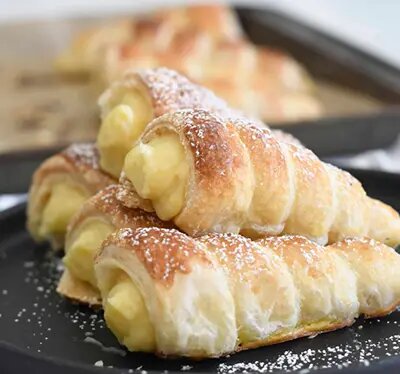 Давайте приготовим вкусные слоеные трубочки с заварным кремом. Для их приготовления можно использовать готовое слоеное тесто, купленное в магазине. Этот десерт получается вкусным и готовится просто. Он украсит любой праздничный стол или дополнит семейное чаепитие. Вот рецепт трубочек с кремом. Для приготовления нам будут нужны вот эти продукты: