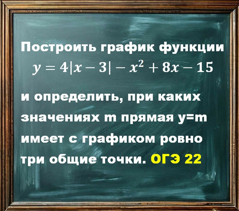 Построить график функции y=4|x-3|-x^sqr2+8x-15 и определить, при каких значениях m прямая y=m имеет с графиком ровно три общие точки.