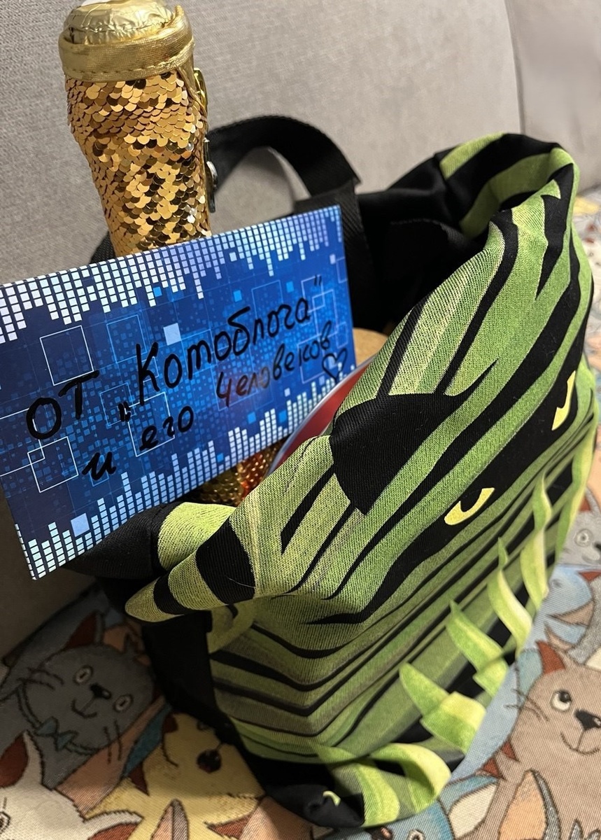 Наш приют встречал гостей, да не просто гостей, а настоящих наших помощников, благодаря которым в декабре были обследованы и пролечены наши фронтовые кошки, а потом все здоровенькие получили билет до Москвы в новые семьи. Абсолютно все эти мероприятия были проведены за счет пожертвований подписчиков Котоблог (https://dzen.ru/kotoblog). Оказывается, эти ребята помогают не только хвостатым малышам, они еще и собирают помощь нашим Защитникам на фронт! Вот и в этой их поездке, они везли помощь ребятам на Донбасс и просто не смогли по пути не сделать остановку в нашем Добром Городе! Встретившись и обнявшись у ворот приюта, я тут же получила сумку (конечно же с изображением кошки😊), полную подарков, тут и вкусненький чай, печеньки (дочь моя сказала, что раньше она только коробки от таких видала, а чтоб полную, с содержимым – первый раз), и даже шампанское! Был в сумке и конвертик с потрясающей надписью «от КОТОБЛОГА и его Человеков» Зная, что Наталья с супругом едут с помощью для Донбасса,