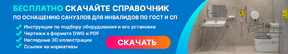 Однако в нашей практике нередки случаи оснащения стесненных пространств, в которых нормативная раковина не всегда помещается. В этом случае допускается установка раковины меньших габаритов. Важно понимать, что лучше оснастить санузел для МГН небольшой раковиной, чем оставить его совсем без раковины.