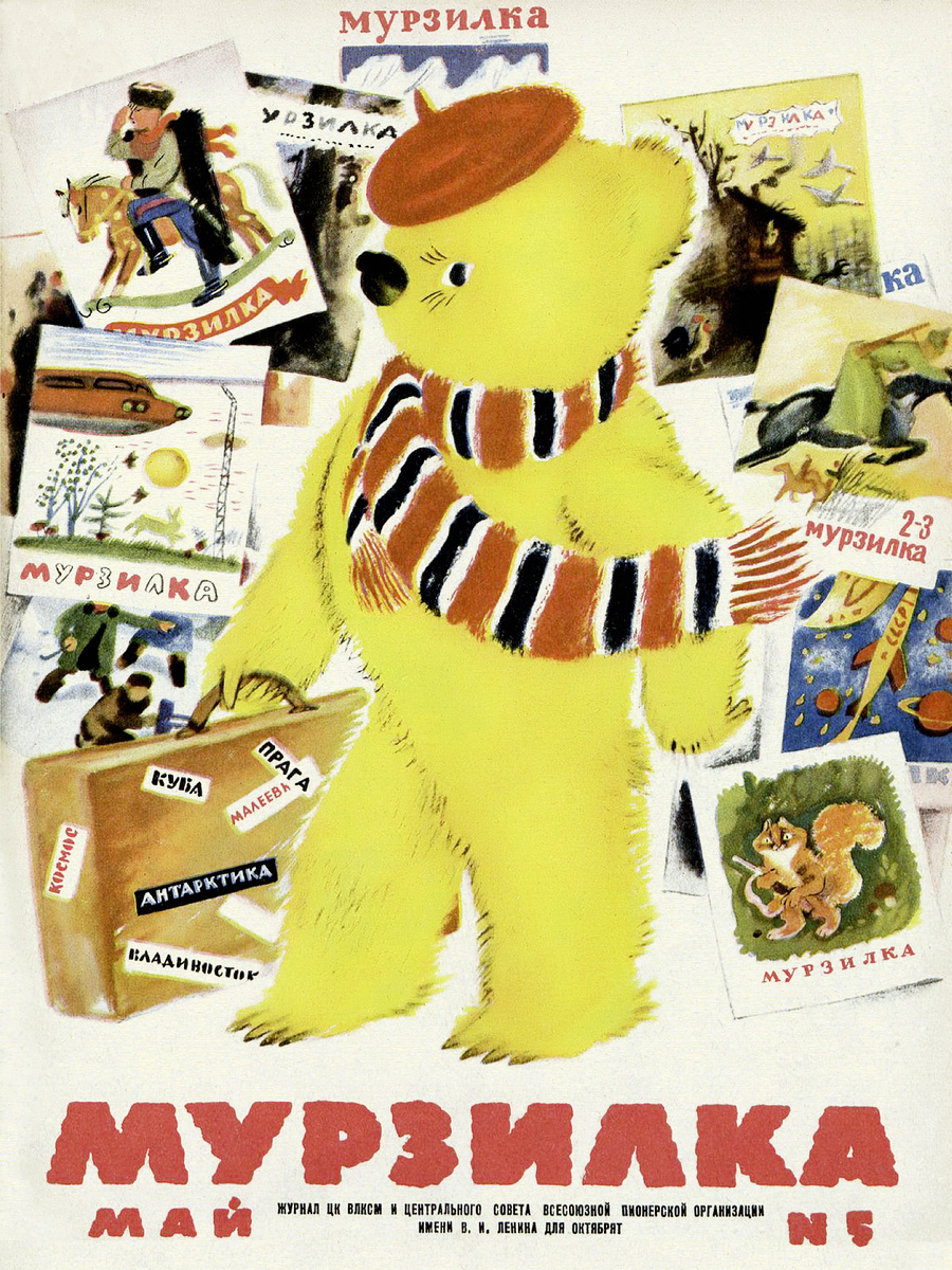 Юбилейный выпуск детского журнала "Мурзилка" №5 1964г. - 40 лет. «Мурзи́лка» — советский общесоюзный массовый ежемесячный русскоязычный литературно-художественный журнал, издающийся с 1924 года. Издание было адресовано детям от 6 до 12 лет — для «октябрят»; в 1960—1980-е годы тираж журнала превышал пять миллионов экземпляров. До 1991 года являлся журналом ЦК ВЛКСМ и Центрального совета Всесоюзной пионерской организации имени В. И. Ленина, до 1992 года выпуск журнала осуществлялся издательством «Молодая гвардия». Награждён орденом «Знак Почёта» (1974). После 1991 года журнал продолжает издаваться в Российской Федерации как «ежемесячный журнал для детей». С 17 ноября 1993 года журнал издается ЗАО (с 2016 — ООО) «Редакция Журнала „Мурзилка“». Лауреат премии Правительства Российской Федерации (2014). Обращение к читателям: для улучшения читаемости и визуального восприятия со страницами журнала проведены некоторые манипуляции в графическом редакторе, а именно проведена цветокоррекция (убран