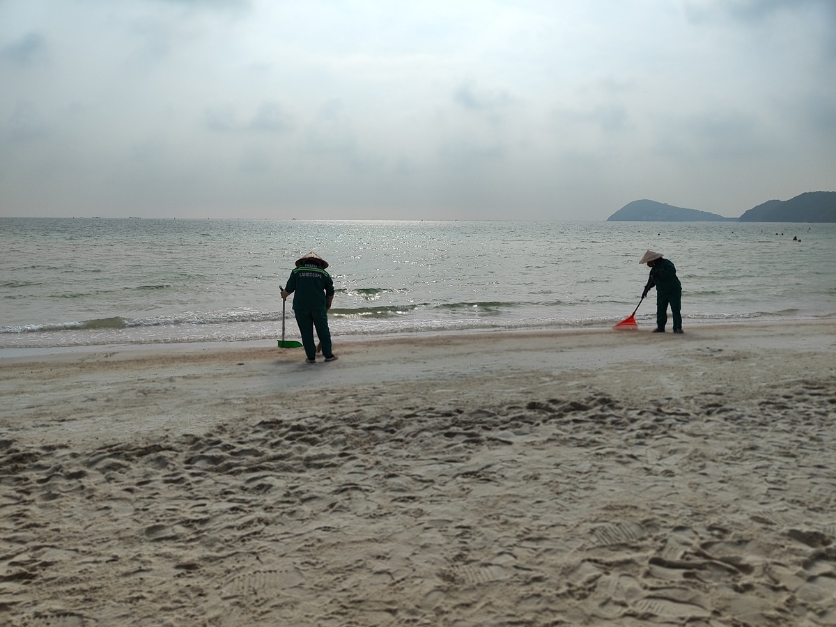 По берегу постоянно ходят уборщики, их много.