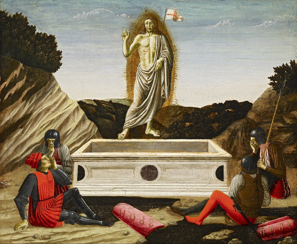 Франческо Боттичини (1446–1498) родился во Флоренции и получил первые уроки живописи у своего отца, художника-ремесленника, а в тринадцать лет прошёл недолгое ученичество в мастерской Нери ди Биччи (1418–1492). Документ 1469 года, упоминающий Боттичини как художника, позволяет предположить, что к тому времени он уже основал собственную мастерскую. Художник монументальных алтарных образов, Боттичини впитал в себя влияние некоторых ведущих флорентийских художников того периода, среди которых Андреа дель Верроккьо (ок. 1435–1488), Перуджино (ок. 1446/52–1523) и Сандро Боттичелли (1445–1510), а также некоторые черты фламандской живописи. Строгое достоинство сцены, простая композиция придают этой небольшой (28.5x33.7 см) панели исключительное ощущение монументальности. Изображая Христа парящим в мандорле над гробницей, художник следует флорентийской традиции объединения событий Воскресения и Вознесения. Предполагается, что картина является одной из серии дополнительных панелей ныне утра