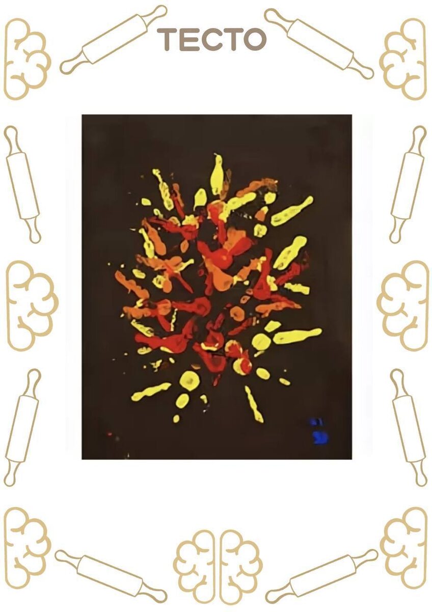 На картинке рисунок под названием «Фейерверк», который выставили на онлайн-аукцион eBay. Работа выполнена акриловыми красками жёлтого, оранжевого и красного цветов на черном листе бумаги. Рисунок оценили в 535 долларов. Курица Саймон. У дебютной картины курицы, которая оставила автограф в виде синего отпечатка своей лапы в углу, была вполне конкретная цель: выручить деньги на строительство новой детской площадки.
