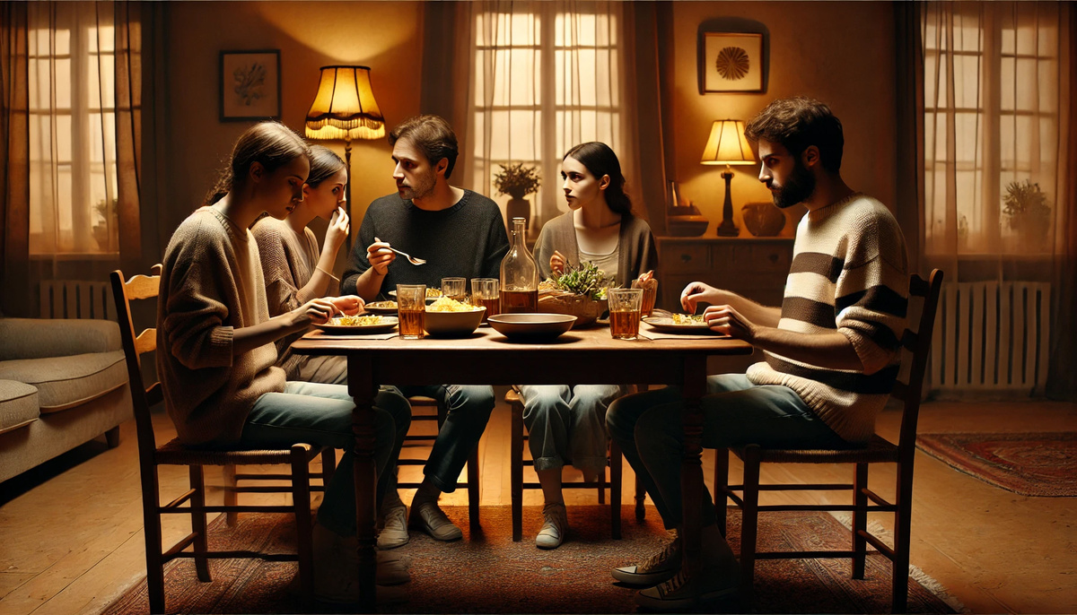 В этот субботний вечер Мария и Алексей готовились к долгожданному визиту их старых друзей — семьи Петровых. Они не виделись уже несколько лет, и, хотя воспоминания о прошлых встречах неизменно напоминали о чрезмерной прожорливости Петровых, отказаться от их настойчивого желания приехать в гости было невозможно. Мария аккуратно раскладывала салфетки, глядя на простой, но уютный стол. Борщ, пара салатов, жареная курица и немного пирожков — ничего изысканного, но достаточно, чтобы накормить компанию. Алексей подсел к жене, вздохнув: — Думаешь, хватит? — Если и этого не хватит, то пусть извиняют, — ответила Мария, с трудом сдерживая раздражение. — Не могла же я целую неделю стоять у плиты. Они оба знали: Петровы всегда ели так, будто у них в доме голод. Но, несмотря на это, воспоминания о старой дружбе и общих весёлых вечерах всё ещё грели душу. Вечером раздался звонок в дверь. Мария открыла и с улыбкой встретила гостей. Петровы, улыбаясь во весь рот, втащили в прихожую большой торт и буты