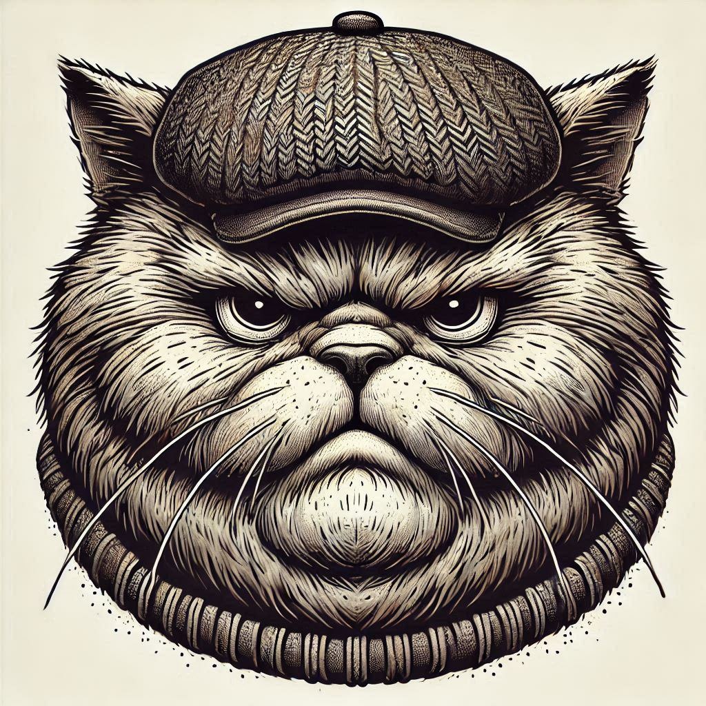 Приветствую всех в моей личной нейрохудожественной галерее под названием «Промпт Палыча»! 👋 Я рад представить вам результаты моего творческого поиска, где каждый промпт был тщательно продуман и воплощен в жизнь с помощью искусственного интеллекта. Это место, где я делюсь своими самыми смелыми идеями и фантазиями, выраженными через визуальное искусство. Каждая работа в этой галерее — это маленькая история, которая началась с простого текста и превратилась в нечто большее. Я старался передать через них свои эмоции, мысли и впечатления, смешивая различные стили и техники. Кстати, пока я работал над логотипом для галереи, мне удалось создать несколько очень интересных изображений. Они получились совершенно спонтанно, в процессе экспериментов с разными подходами. Эти работы теперь тоже занимают свое место в коллекции, и я надеюсь, они смогут вдохновить вас так же, как вдохновляют меня. A highly detailed, cartoon-style image of a brutish, overweight cat wearing a flat cap. The cat has a