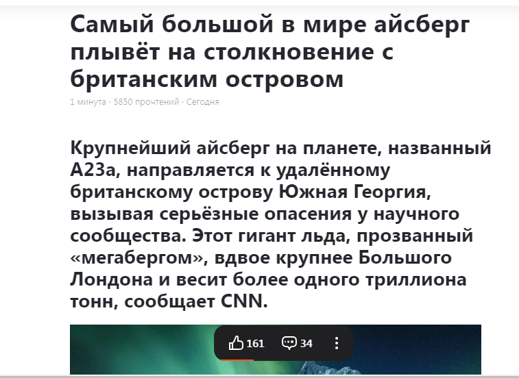 Ну, по крайней мере так пишут в наших СМИ... Всем привет! Ой, я так испереживался! Думаю, вот это да! Это ведь - о-го-го! И ух ты! И только с третьего раза врубился, что айсберг этот до Лондона не дотянется. Потому что плавает он - у берегов Антарктиды! Короче - голый номер... Ну, айсберг, фиг с ним, растает и никто о нем больше не вспомнит. А вот новость поинтереснее: АСТАНА, 24 янв - РИА Новости. Опубликованная в интернете расшифровка черных ящиков потерпевшего катастрофу под Актау самолёта компании AZAL отличается от оригинала, сообщил вице-премьер Казахстана, глава комиссии по расследованию авиакатастрофы Канат Бозумбаев. "Там где-то в интернете кто-то что-то там опубликовал. Это не означает, что это истина, и есть большое отличие от содержимого чёрных ящиков", - приводит слова Бозумбаева агентство Казинформ. А ведь люди не на заборе мелом писали, а в серьезных, вроде листках, что зря соседи из солнечного Закавказья обиделись на нас, вон в "черном ящике" ясно записано - птицы там с