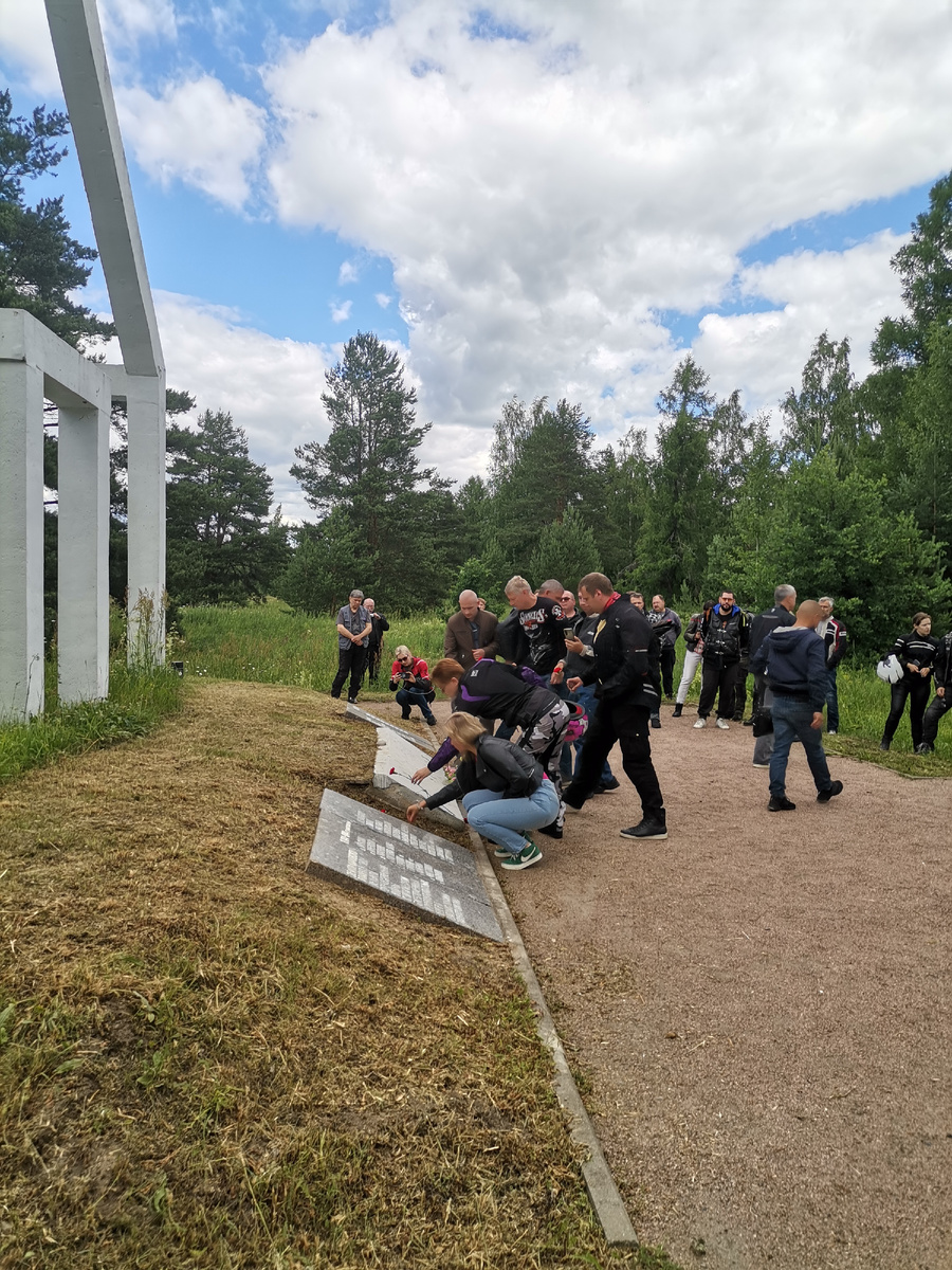 Есть у нас в Петербурге такой мотоклуб OST MC. Там президент - действующий священнослужитель. Ну и, они устраивают в сезон много прохватов по Ленобласти и не только, посвящённых памятным местам боёв и датам Великой Отечественной войны. В общем-то, поехали мы с женой на этот прохват чисто от "нечего делать". Я не любитель массовых мероприятий, даже на "Сизон опенинг/клозинг" не ежжу. Поскольку очень уж неуютно себя чуйствую, когда вокруг очень много людей с "какими-то" навыками управления мотоцикла, уж молчу про правила езды в колонне... К слову, всё было не так уж плохо, но отдельные индивиды просто... Куда ты, блин, едешь, меня обгоняя на хреновой дороге? В тот момент, когда я смещаюсь для объезда ямы в его сторону.... Ладно.... Организаторам пожелание - перед стартом кратенько пробегаться по правилам езды в колонне. Даже, блин, ролик снят на эту тему... Вернёмся в тему. Я сам лично большой любитель этого исторического периода, периода Великой Отечественной войны в рамках второй мир