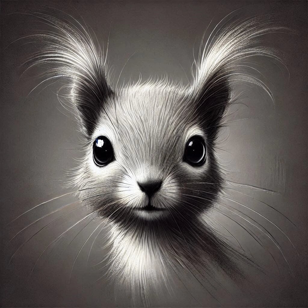 Меня всегда трогает уязвимость маленьких созданий. Я хотел передать это чувство через портрет белки, сделав акцент на её выразительных глазах и легком удивлении. Мягкие линии и приглушенные тона должны создать ощущение хрупкости и нежности. Промпт: A stylized squirrel portrait, head tilted slightly, with wide, expressive eyes. Its fur is rendered with soft, charcoal-like strokes, emphasizing subtle texture. The mouth is slightly open in a silent gasp. Muted grays and whites create a gentle, melancholic atmosphere. Soft, diffused light highlights the delicate details of the fur and whiskers, casting subtle shadows. Whimsical, slightly exaggerated ears add to the overall charm. The background is a simple, dark gradient, keeping the focus on the squirrel. #белка #портрет #живопись #графика #арт #животные #нейросеть #меланхолия #милота #природа #художник #вдохновение #творчество #промпт #искусство Понравилась картина? Ставьте лайк, оставляйте комментарии и делитесь своими идеями для буд