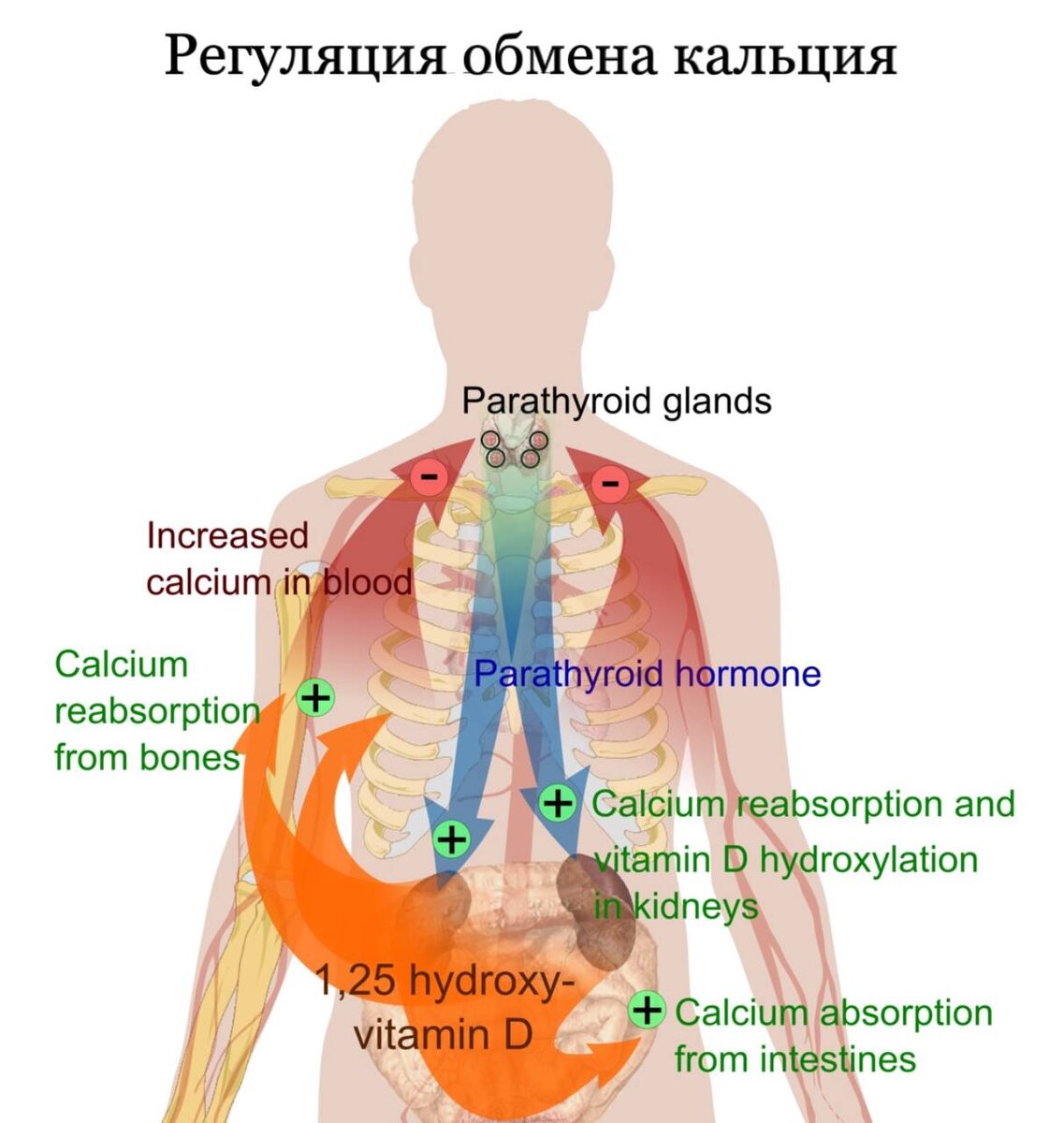 Кальций - очень важный макроэлемент, участвующий во многих реакциях в организме человека. Регуляция обмена кальция осуществляется гормональным путем 1. Участие в передаче нервных импульсов и сокращении мышц 2. Кальций участвует в формировании костной ткани и зубов 3. Участие в свертывании крови 4. Участие в регуляции сердечного ритма 5. Поддержание нормальной работы иммунной системы Тело человека в среднем содержит около 1 кг кальция В некоторых районах Африки укусы ядовитых пауков лечат кальцием, так как он уменьшает судороги 1. Болезненные ощущения в костях 2. Спазмы и судороги 3. Повышение чувствительности зубов 4. В длительной перспективе переломы костей 5. Проблемы с волосами и ногтями 6. Нарушение чувствительности (ощущение онемения и покалывания) 1. Неспецифические проявления: слабость, быстрая утомляемость 2. Отложение кальция в различных органах с нарушением их функций (выраженые проблемы с почками) 3. Слишком высокий уровень кальция может привести к ос