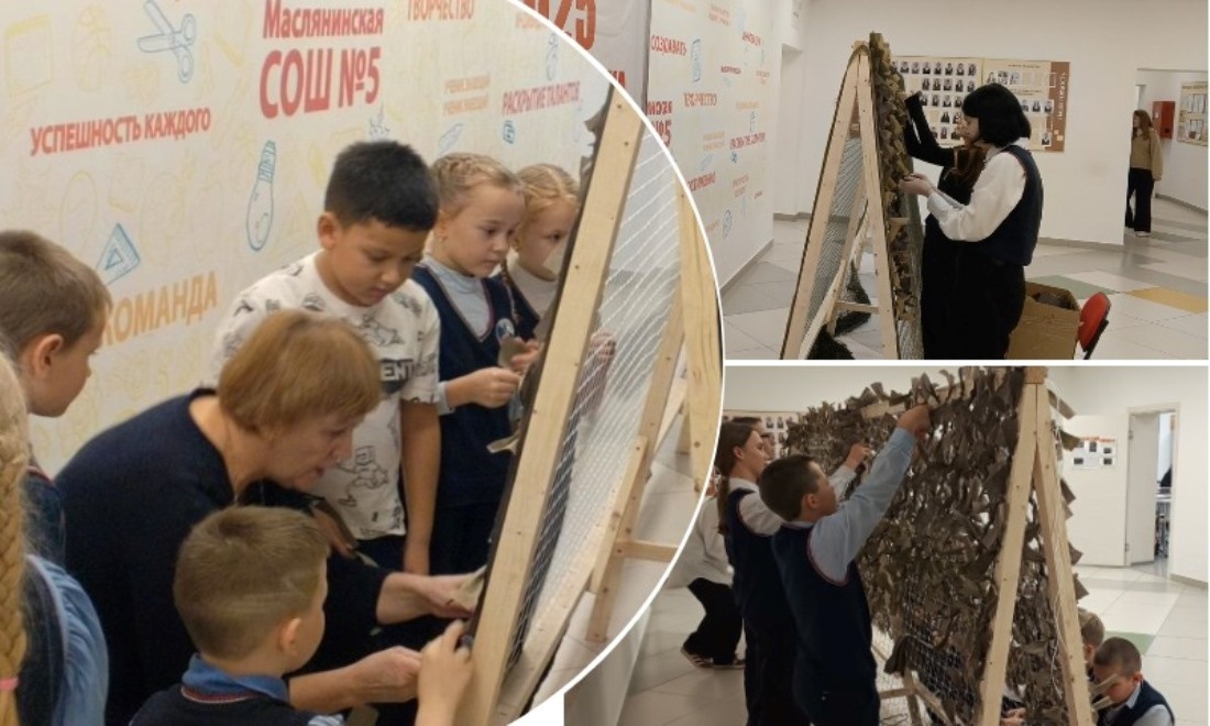 Школьники Маслянинского округа на переменах между уроками плетут маскировочные сети. Этому ребят научили бывшие учителя. Бойцы СВО благодарны ученикам за помощь и поддержку. Коллектив педагогов и учащихся школы № 5 в Маслянинском муниципальном округе Новосибирской области на протяжении нескольких лет участвует в благотворительных проектах и оказывает посильную помощь бойцам специальной военной операции. Только в конце 2024 года в рамках акции «Подарок солдату» отправили на Донбасс 24 коробки с подарками для военных, их собирали учащиеся с 1 по 11 классы. Ребята вместе с учителями сами изготавливают и маскировочные сети. Этому их научили ветераны педагогического труда, которые ранее работали в стенах этой школы. Ветераны-учителя микрорайона Совхоз, на территории которого и расположена школа № 5, давно объединились в волонтёрскую группу, освоили плетение масксетей на специальных станках, даже проводили для учеников своей школы мастер-класс. Многие ребята и их педагоги в свободное время п