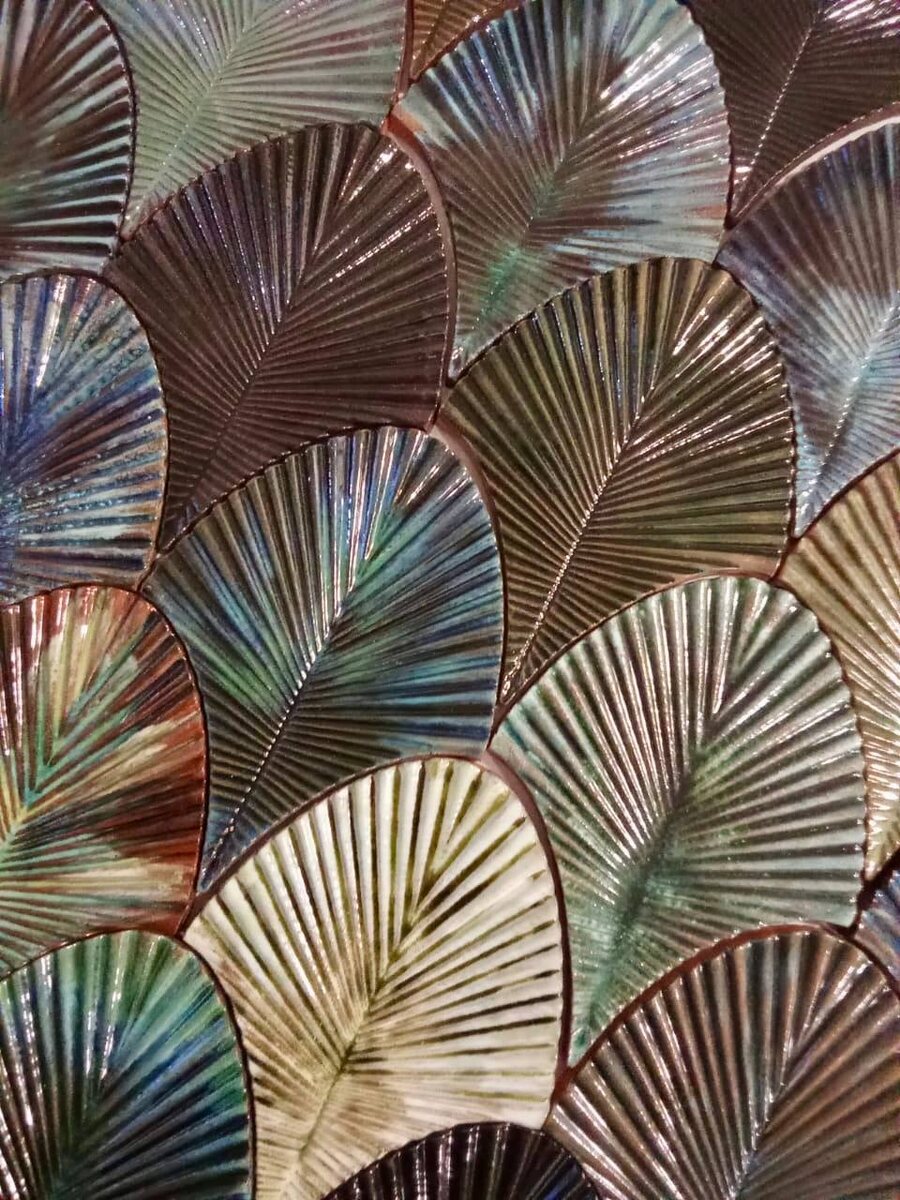 В процессе выкрасов мы использовали: цвет морской пены, гребня волны, зеленого сланца и глубокий оттенок песто. Реалистичная текстура папоротника с объемными прожилками и умелые руки мастеров сотворили чудеса! Только взгляните, как великолепно раскрыта глубина цвета и насколько шикарно данная керамика смотрится в такой необычной реализации. Совсем скоро плитка украсит стены санузла частного дома Екатерины и мы обязательно поделимся с вами интерьерными фото.