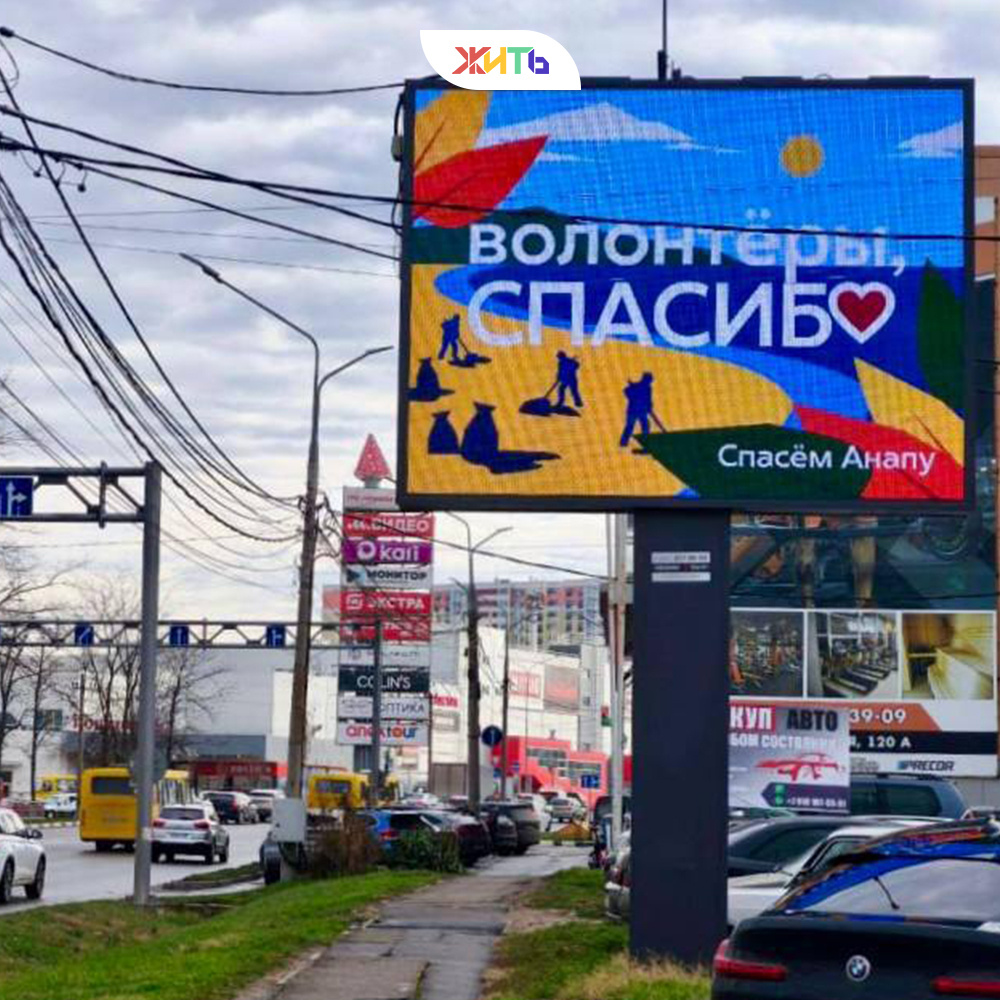 В более чем 20 городах России появились билборды со словами благодарности волонтёрам Анапы.