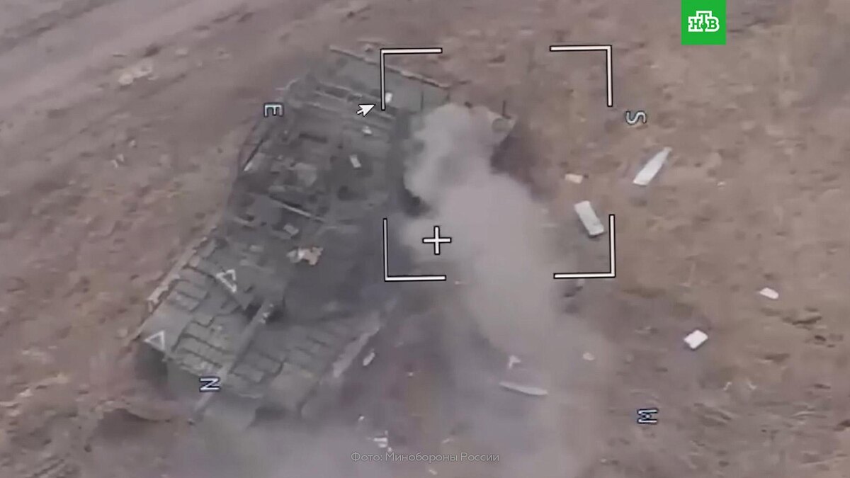 [ Смотреть видео на сайте НТВ ] Минобороны РФ поделилось кадрами из Курской области, где российские военнослужащие уничтожили немецкий танк Abrams. Западную технику сняли на видео в деревне Викторовка в Курской области. Вокруг дымящегося танка разбросаны осколки и мусор, а рядом лежит предмет, напоминающий лопату. Известно, что военную технику вывели из строя с помощью барражирующего боеприпаса «Ланцет». Ранее танк принадлежал ФРГ, сообщает Минобороны РФ. Сегодня стало известно об освобождении еще одного населенного пункта — это село Тимофеевка в ДНР. [ Смотреть видео на сайте НТВ ]