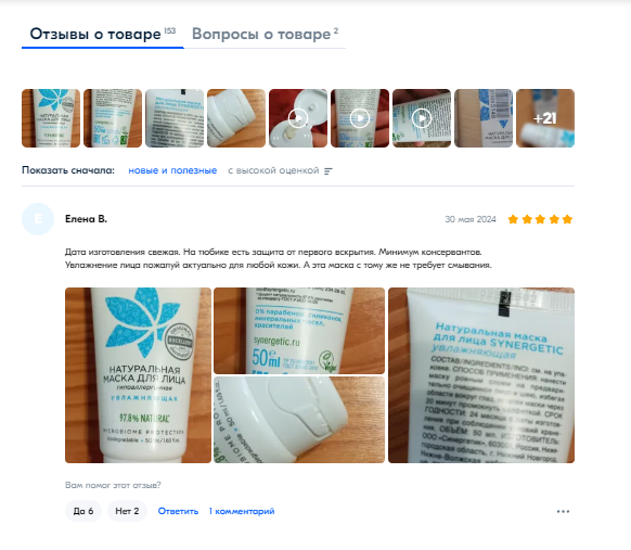 Отзывы с фотографиями, как и свежие отзывы всегда имеют преимущество, так как они воспринимаются покупателями как более достоверные.