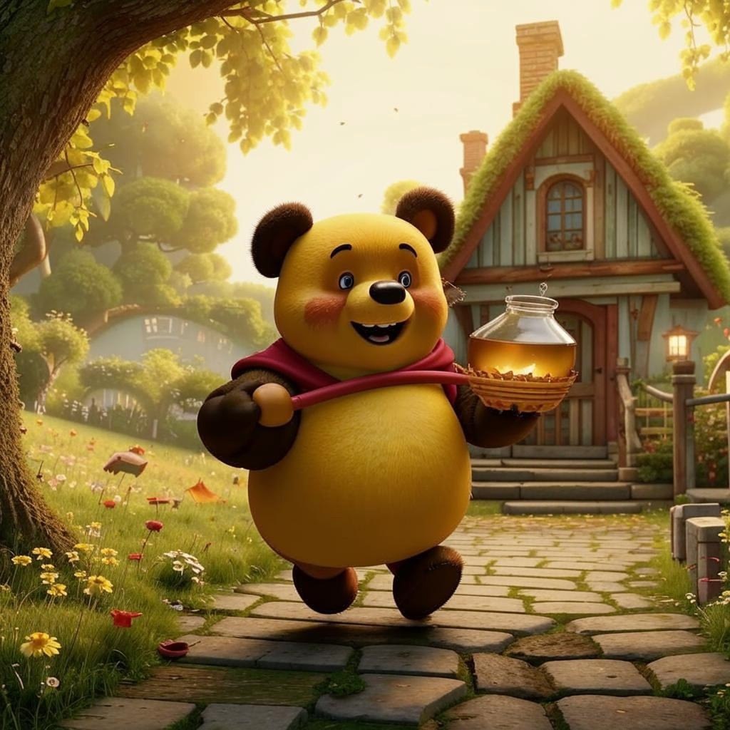 o Изменение размера Винни-Пуха: Винни-Пух может похудеть, чтобы протиснуться в узкую нору.