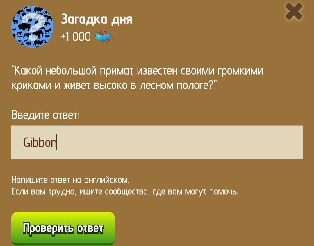 Загадка дня в ZOO от 24 января 2025 Ответ: Gibbon Расписания подарочных коробок и инсайды ZOO, выкладываем регулярно в нашем телеграм канале - ТУТ Ответы на загадки и ребусы нужно вводить в разделе "Задания". Zoo - это игра, где нужно развивать свой зоопарк и собирать игровые монеты. Улучшаем животных, вступаем в альянс и выполняем задания.