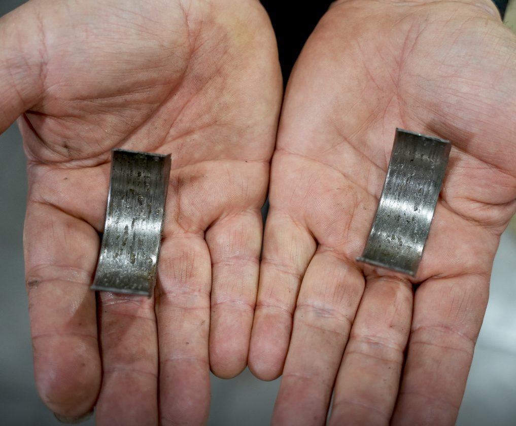 На СТО ЕвроАвто на эвакуаторе приехал Hyundai Santa Fe 2015 года с двигателем 2,4 л. Его пробег — 75 тысяч километров, и проблемы с мотором уже появились. При этом пробег двигателя меньше: после установки он прошел всего 4,5 тысячи километров. Разбираемся, что случилось! Клиент рассказал, что купил двигатель у продавца, который позиционировал агрегат как оригинал. Мотор был установлен и прошел обкатку по инструкции продавца. Через 11 месяцев под капотом появились посторонние звуки. Чтобы замерить давление масла, пришлось открутить упор впускного коллектора, достать датчик давления и на его место вкрутить манометр. Оказалось, что все гильзы задраны. Стук идет из одного цилиндра. Мы предположили, что причина в том, что провернуло шатунные вкладыши. Чтобы проверить эту гипотезу, придется разобрать мотор. Основной поддон прикручен к коробке, поэтому без его снятия не добраться до шатунов. Но сначала сливаем масло. Видим в нем металлическую пыль. Это нормально для необкатанного мотора, в на