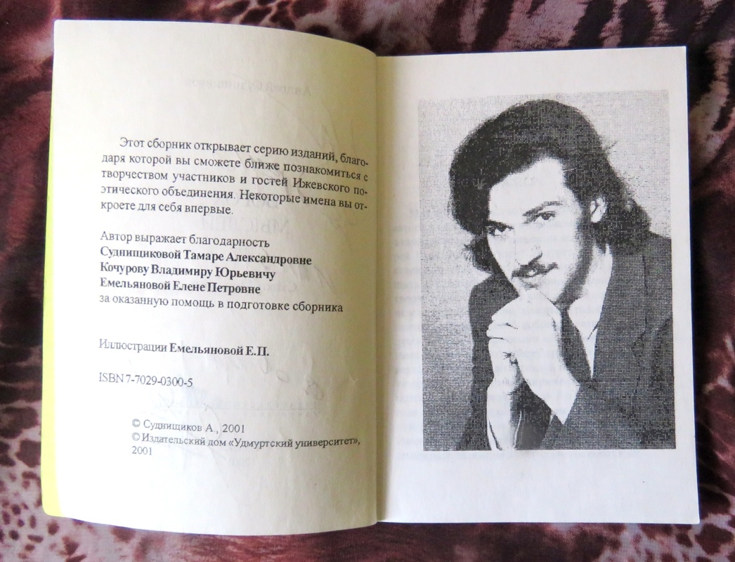 Первая встреча с Андреем Суднищиковым состоялась на заключительном этапе республиканского конкурса «Воспитатель года Удмуртии». Андрей был среди конкурсантов, и мы тот час же прозвали его Усатый нянь. Молодой человек балагурил, играл на гитаре, прекрасно пел, читал свои стихи и, как и Сергей Проханов в фильме, носил усы. Даже во внешности наблюдалось весьма отдалённое сходство. Позднее нам ещё не раз приходилось встречаться, но книжка «Ворох мыслей» с автографом осталась у меня на память именно после конкурсных дней. Стихи Андрея местами неровные. Поэт не слишком строг к рифме, часто переходит на свободный стих, но чего у него не отнять, так это умения находить яркие, порой пронзительные, образы. Этому он учил и ребят в поэтическом объединении, которым руководил. Сколько же вас, самородки.