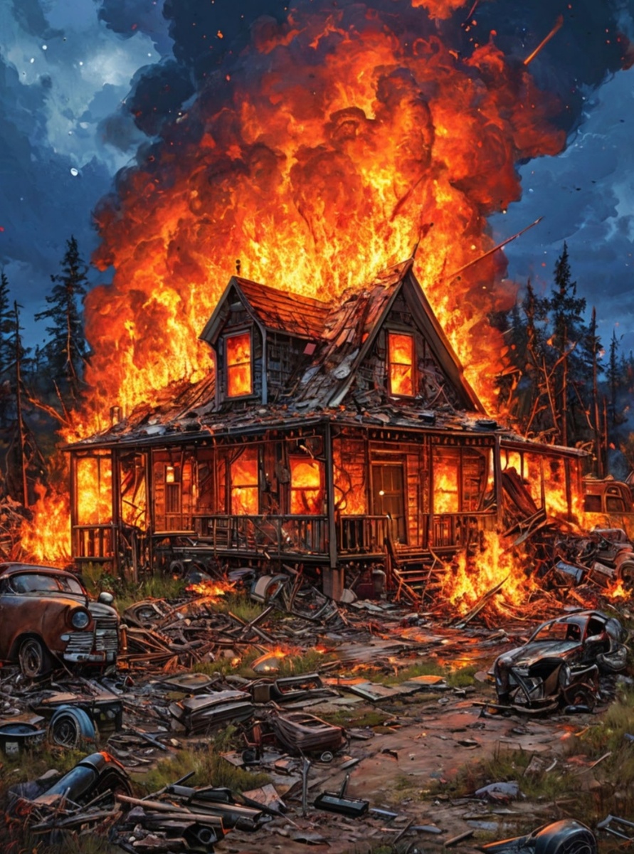 Друзья молчали наблюдая, как их приятель поливает бензином дом. Но на доме он не остановился, вышел на улицу и стал поливать горючей жидкостью всё, что попадалось ему на глаза. А когда чиркнул спичкой и пламя взмылось вверх, девочка заметила, как что-то погасло в его глазах несмотря на то, что в те самые секунды в них отражаясь полыхало пламя. Какое-то время они просто стояли и смотрели как огонь пожирает всё вокруг, вместе с воспоминаниями мальчика, что в прямом смысле слова вырос на куче мусора.
