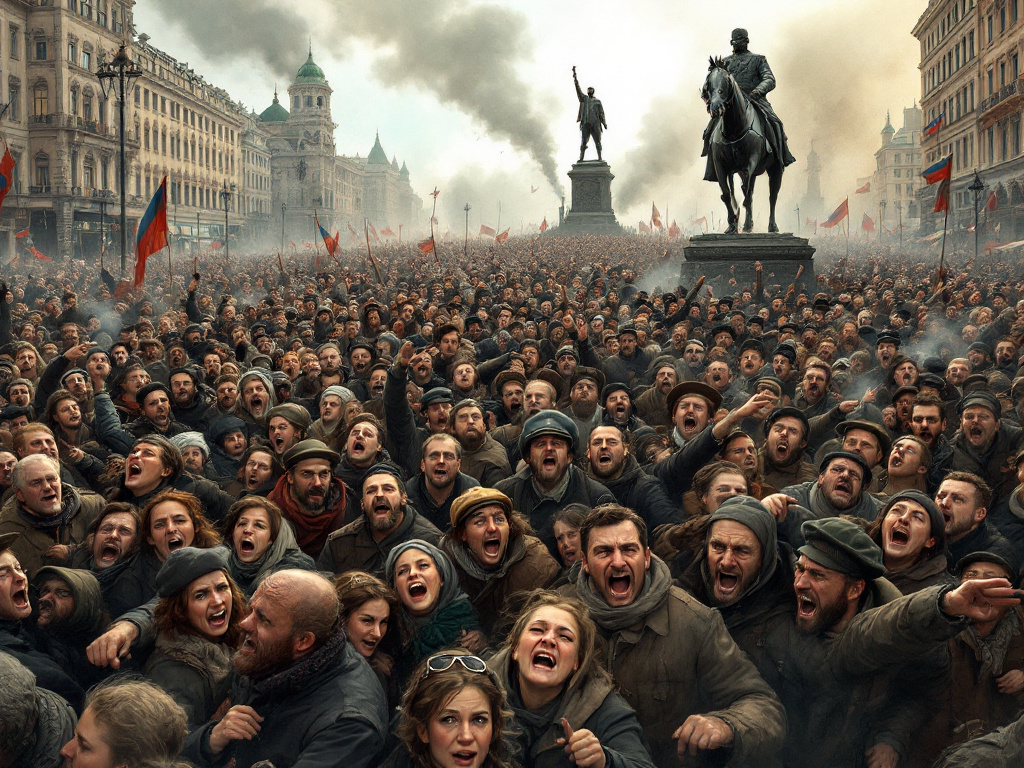 Февральская революция началась в Петрограде (ныне Санкт-Петербург) в феврале 1917 года. Основными причинами революции стали недовольство народа политикой царского правительства, экономические трудности, вызванные участием России в Первой мировой войне, и социальное неравенство. Массовые демонстрации и забастовки рабочих быстро переросли в революцию, которая привела к отречению царя Николая II от престола 2 марта 1917 года. После отречения царя власть перешла к Временному правительству, которое возглавил князь Георгий Львов. Однако, Временное правительство не смогло решить насущные проблемы страны, такие как выход из войны, аграрный вопрос и улучшение условий жизни рабочих и крестьян. Это создало благоприятную почву для дальнейших революционных событий. Октябрьская революция, также известная как Великая Октябрьская социалистическая революция, произошла 25 октября (7 ноября по новому стилю) 1917 года. Во главе революции стояли большевики под руководством Владимира Ленина. Основной целью
