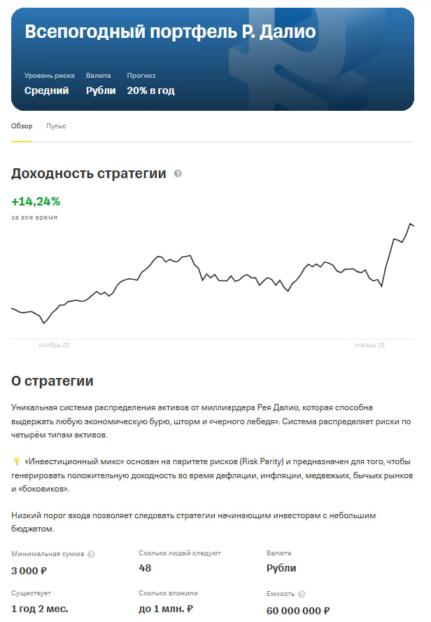 Чуть больше года прошло после того как я сделал для ради эксперимента всепогодную стратегию автоследования. Кстати, подписалось на неё 48 человек, хотя я её никак не рекламировал и ей почти не занимался (за исключением ребалансировок, на которые уходит ~1 минута времени). Стратегия оказалась не провальной. Доходность 14,2% - что точно лучше рынка акций или рынка облигаций, если рассматривать их по отдельности. На уровне инфляции, чуть хуже вкладов за тот же период (напомню, ставки по вкладам лишь последние 3-4 мес перевалили за 20%, а на старте стратегии были 15-16%). Короче, она показала себя ровно так, как и должна была. Суть стратегии в том, что она стабильно приносит примерно одинаковую доходность при любой погоде - и когда ставки по вкладам, к примеру, пойдут вниз - она все равно будет приносить около 15% годовых. Но вот в чем загвоздка: моя личная доходность - а я как клиент в стратегии с самого старта - оказалась на уровне 7%! Половину моих доходов (как клиента) сожрала комисс