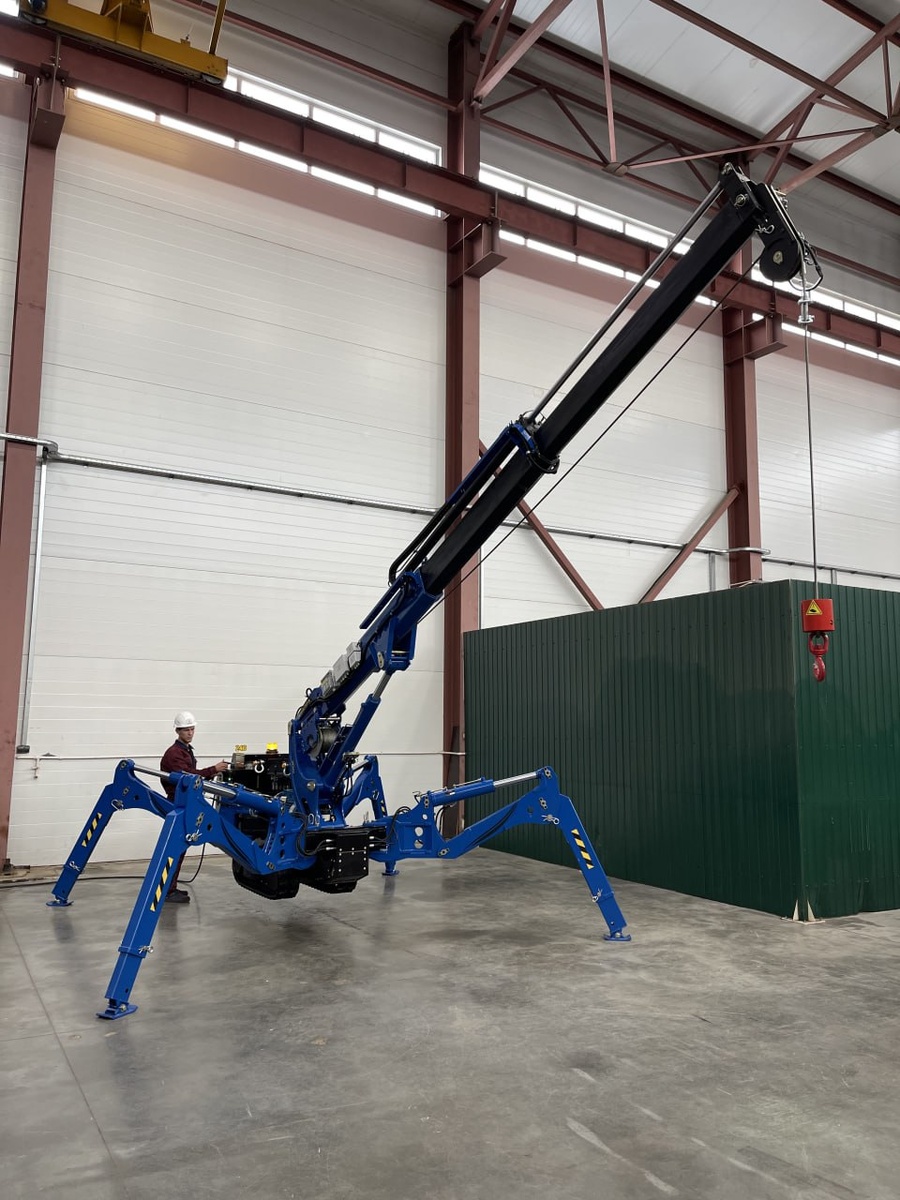 РОИН К-100 — универсальный помощник, совмещающий в себе маневренность, компактность и мощные подъемные характеристики. Краны-пауки РОИН имеют характерную конструкцию с гусеничным шасси, что позволяет равномерно распределять вес машины и минимизировать риск проваливания на мягких грунтах.