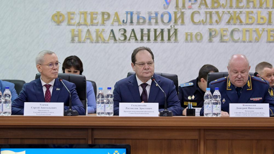 Сегодня, 24 января, глава региона принял участие в расширенном заседании коллегии УФСИН России по Республике Коми, на котором были подведены итоги работы ведомства в минувшем году и обозначены задачи на 2025 год. «2025 год объявлен Годом защитников Отечества в России и Годом героев Коми. Приглашаем к участию в этих проектах. В ваших рядах много героев, и они достойны, чтобы о них знали во всей республике. Многие ветераны УФСИН сейчас участвуют в СВО. Поддержка их семей – наша общая задача», - подчеркнул руководитель врио Главы Республики Коми. Ростислав Гольдштейн высоко оценил вклад сотрудников ведомства в обеспечение правопорядка в Республике Коми, поблагодарил их за службу стране и республике. А также призвал к более активному сотрудничеству с государственными и муниципальными учреждениями Республики Коми: «В 2024 году УФСИН произвёл товаров, работ и услуг на 300 млн рублей, из них для нужд государственных и муниципальных учреждений – всего лишь на 16 млн рублей. Считаю это недопуст