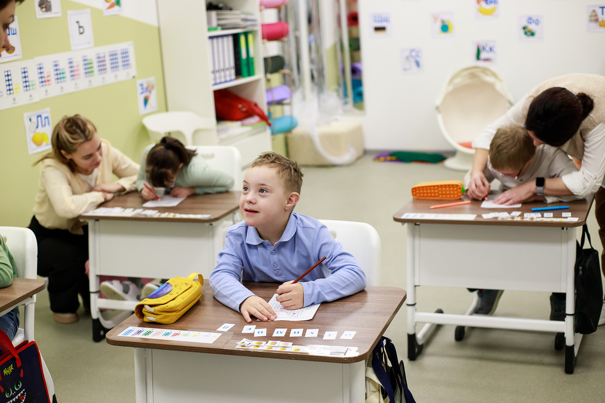 В ресурсном классе, где учатся малыши с синдромом Дауна, используют метод прикладного анализа поведения. Он позволяет учитывать особенности каждого ребёнка и подходить к его обучению индивидуально. Кроме того, у каждого класса есть специальный наставник – тьютор. Он отвечает, в том числе и за эмоциональное состояние детей.
