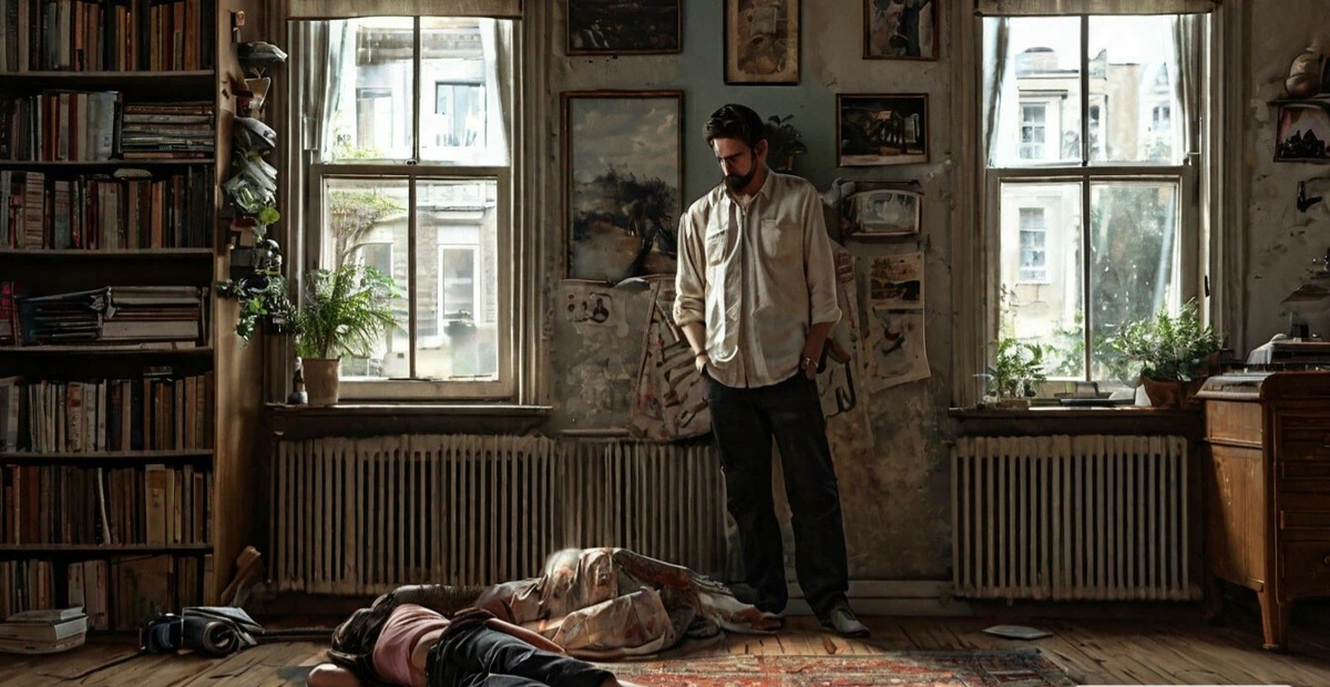 Когда тело матери увезли, Артём остался в квартире, оглушённый. Его мысли метались от воспоминаний о её ласковом голосе до ужаса перед будущим без неё. В голове звучал один и тот же вопрос: «Почему?» Он чувствовал, как воздух стал тяжёлым, почти невыносимым. Артём медленно сел на диван, охваченный смесью гнева, отчаяния и бессилия, стараясь удержать себя от полного погружения в панику. Вскоре пришли полицейские, чтобы составить протокол.