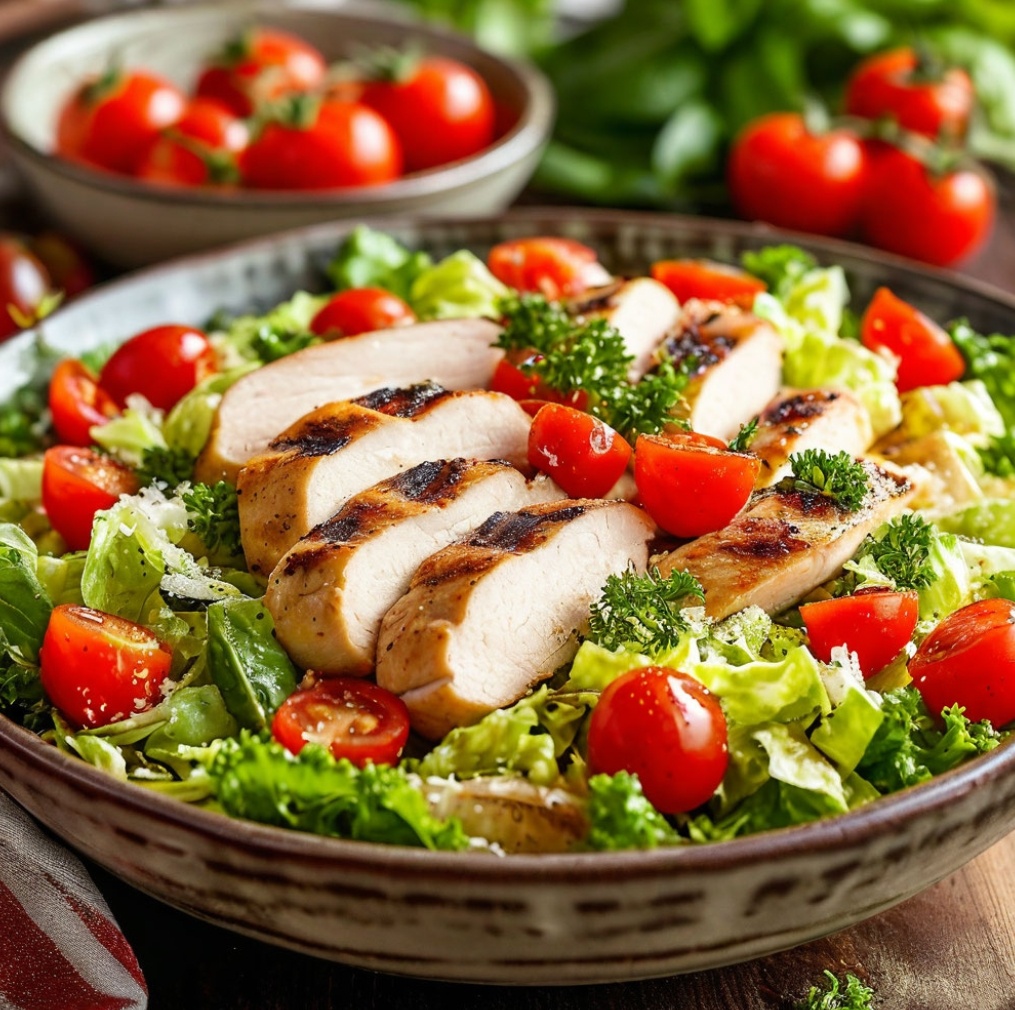 Салат «Цезарь» с курицей и помидорами черри. Быстро и вкусно.