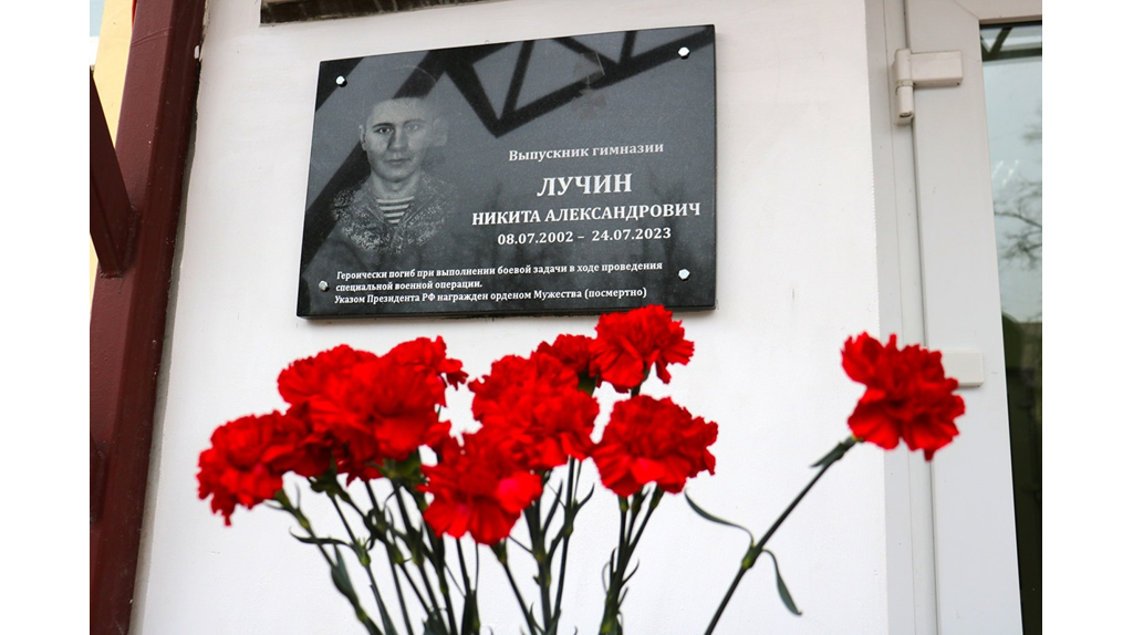 В Брянске увековечили память погибшего в ходе специальной военной операции Никиты Лучина. Мемориальную доску военнослужащему открыли на здании гимназии №4, выпускником которой он являлся. Память Никиты почтили его учителя и одноклассники, гимназисты, его мама Татьяна Лучина, глава Володарской районной администрации Светлана Бледнова, начальник городского управления образования Альберт Малкин. Церемония завершилась минутой молчания. К мемориальной доске возложили десятки гвоздик. Никита Лучин погиб 24 июля 2023 года в ЛНР. Ему был 21 год. Награждён орденом Мужества посмертно. В брянской гимназии №4 открыли мемориальную доску участнику СВО Никите Лучину